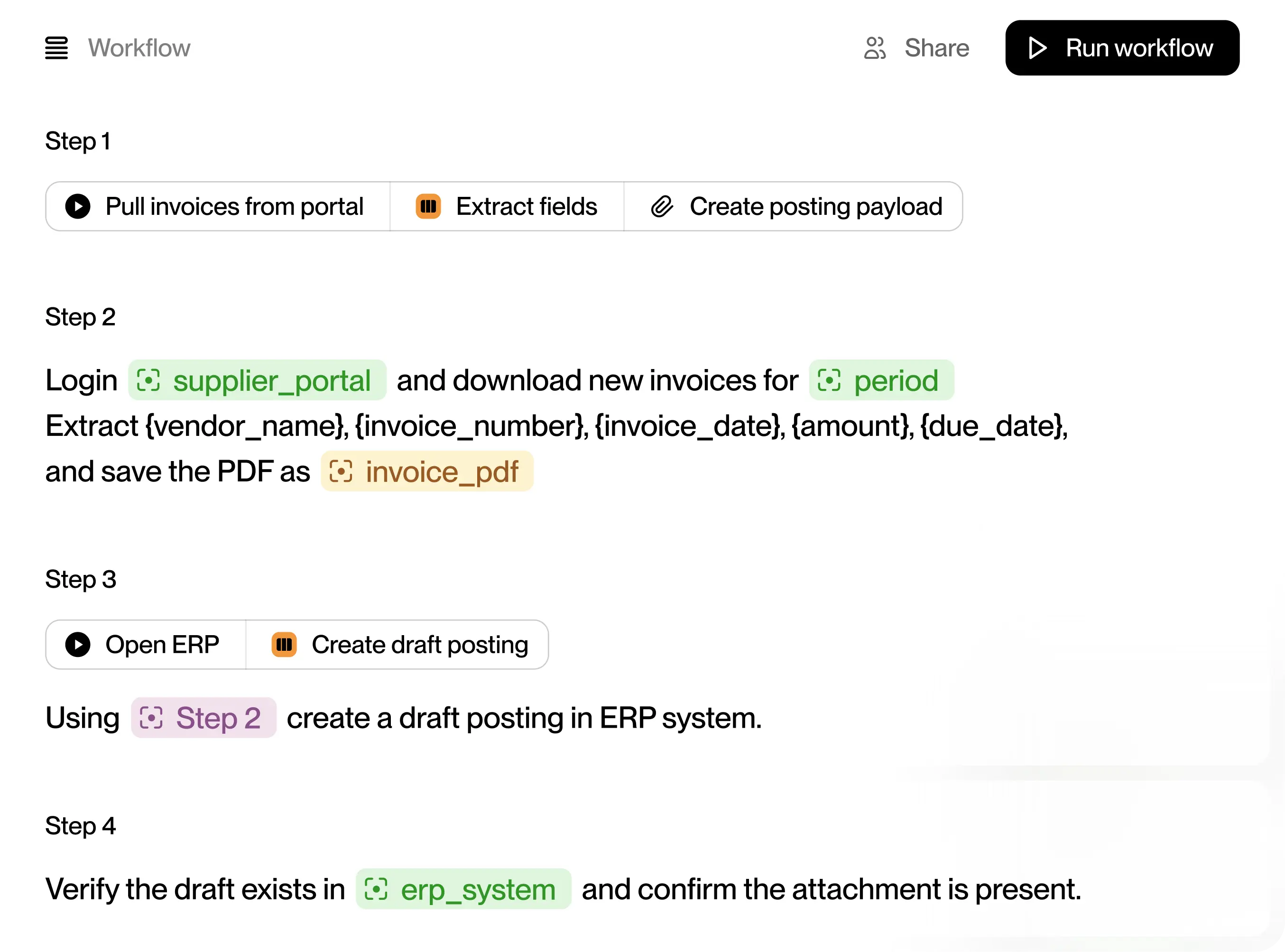 From recording to workflow in minutes.